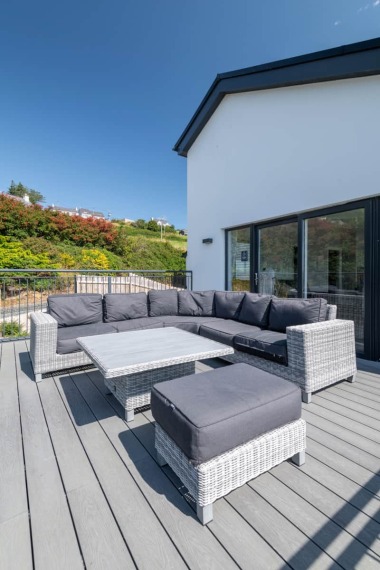 Located on a elevated site just yards from the pubs and restaurants and only a two minute walk from the beach this is ideally placed as a base in this popular seaside village. The emphasis throughout this luxurious holiday home is very much on space and comfort. This home makes good use of open plan living inside and a terraced area to the front and sides which makes the most of the views and sun. The outdoor area with and patio furniture lets you make the most of those long summer days.